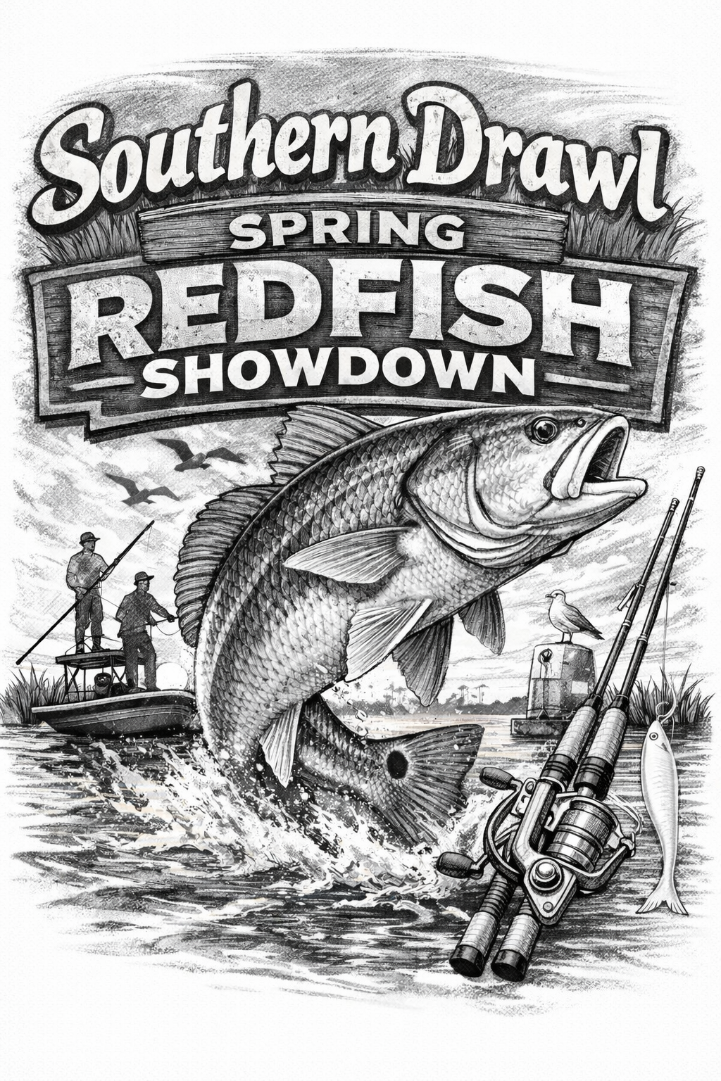 The Southern Drawl Spring Redfish Showdown is an artificial-only redfish tournament built for serious inshore anglers. Teams will compete with a three-fish slot limit and a live weigh-in, emphasizing skill, strategy, and responsible fish handling.